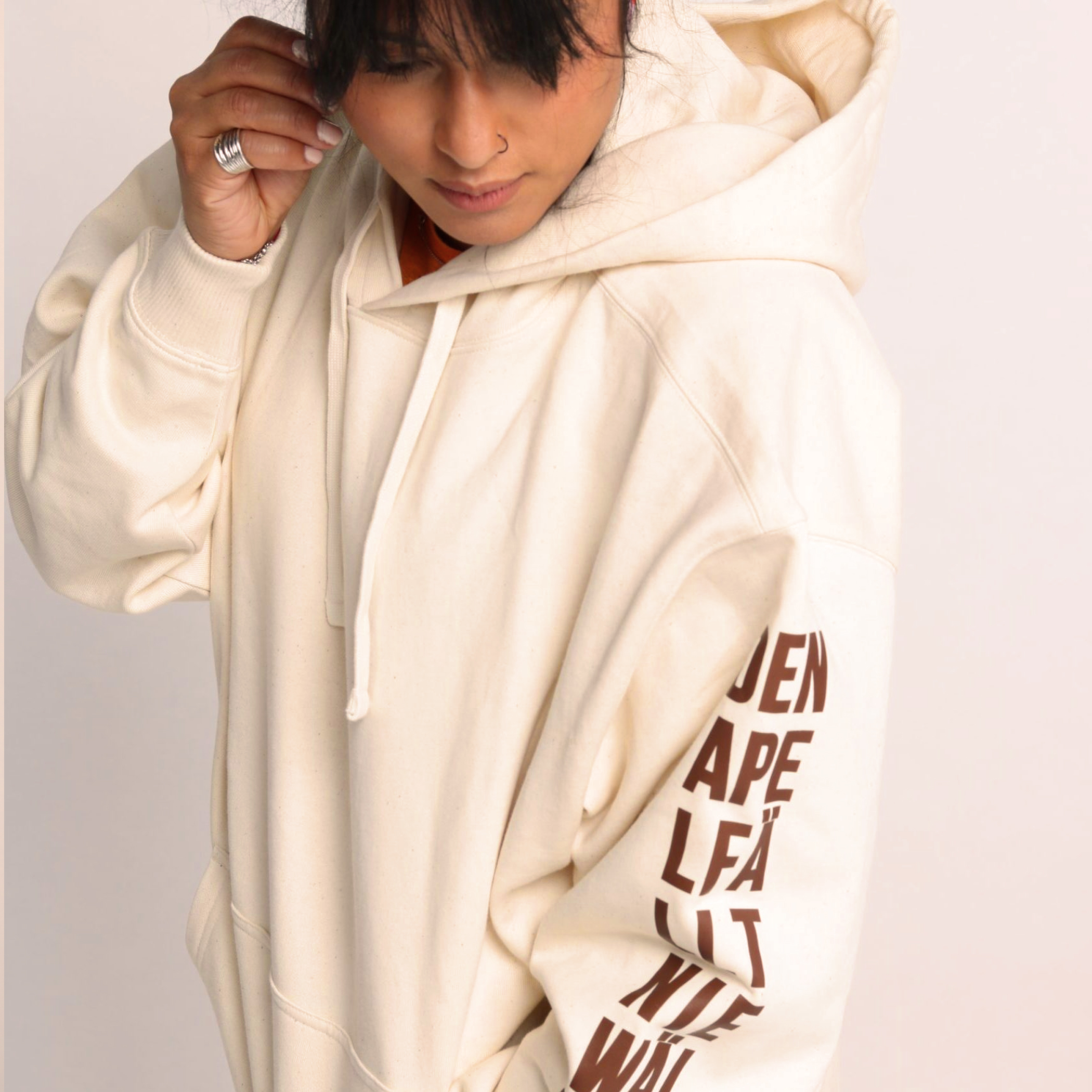 Confortable, stylé et porteur de sens, ce sweat à capuche oversize célèbre les liens uniques entre les générations avec une touche d’humour et de tradition luxembourgeoise. Sur sa manche, la citation en luxembourgeois « Den Apel fällt nie waït vum Stamm » (La pomme ne tombe jamais loin de l’arbre) illustre l’héritage familial de manière subtile et poétique.